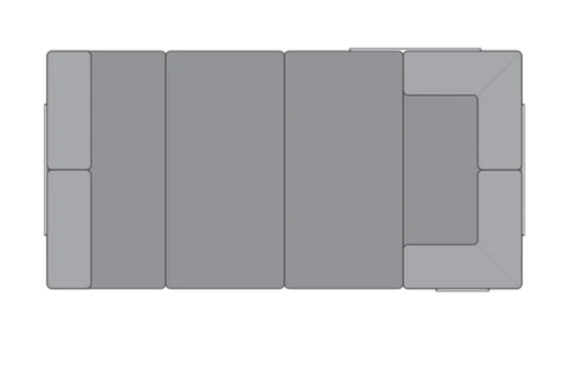 LUMO Angle ouvert se compose de quatre matelas de qualité supérieure et de quatre coussins modulables (deux d'angle et deux droits), pour un agencement facile et adapté à votre espace. Les matelas en mousse froide allient soutien ferme et confort moelleux, parfaits pour s’asseoir ou dormir. Les coussins, remplis de fibres de billes de silicone dans une housse intérieure, permettent de retirer facilement la housse extérieure sans perturber le rembourrage.