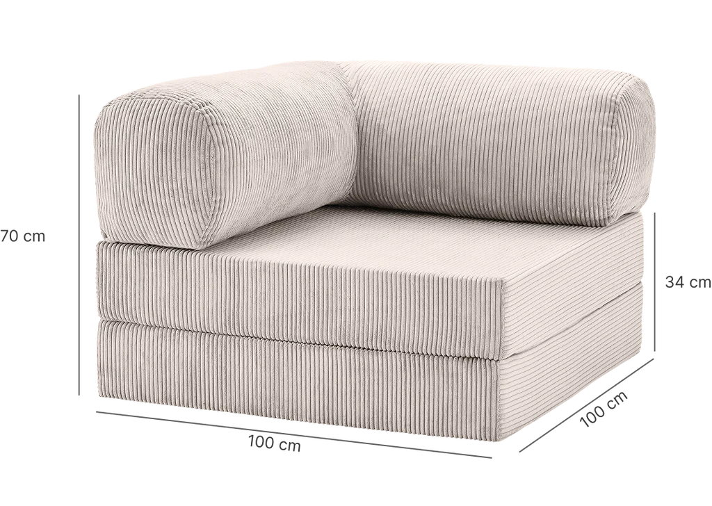 Matelas haut de gamme et coussin d'angle modulable : asseyez-vous, détendez-vous ou faites un petite sieste. Recouvert de velours côtelé luxueux et durable, LUMO Fauteuil allie confort et élégance.